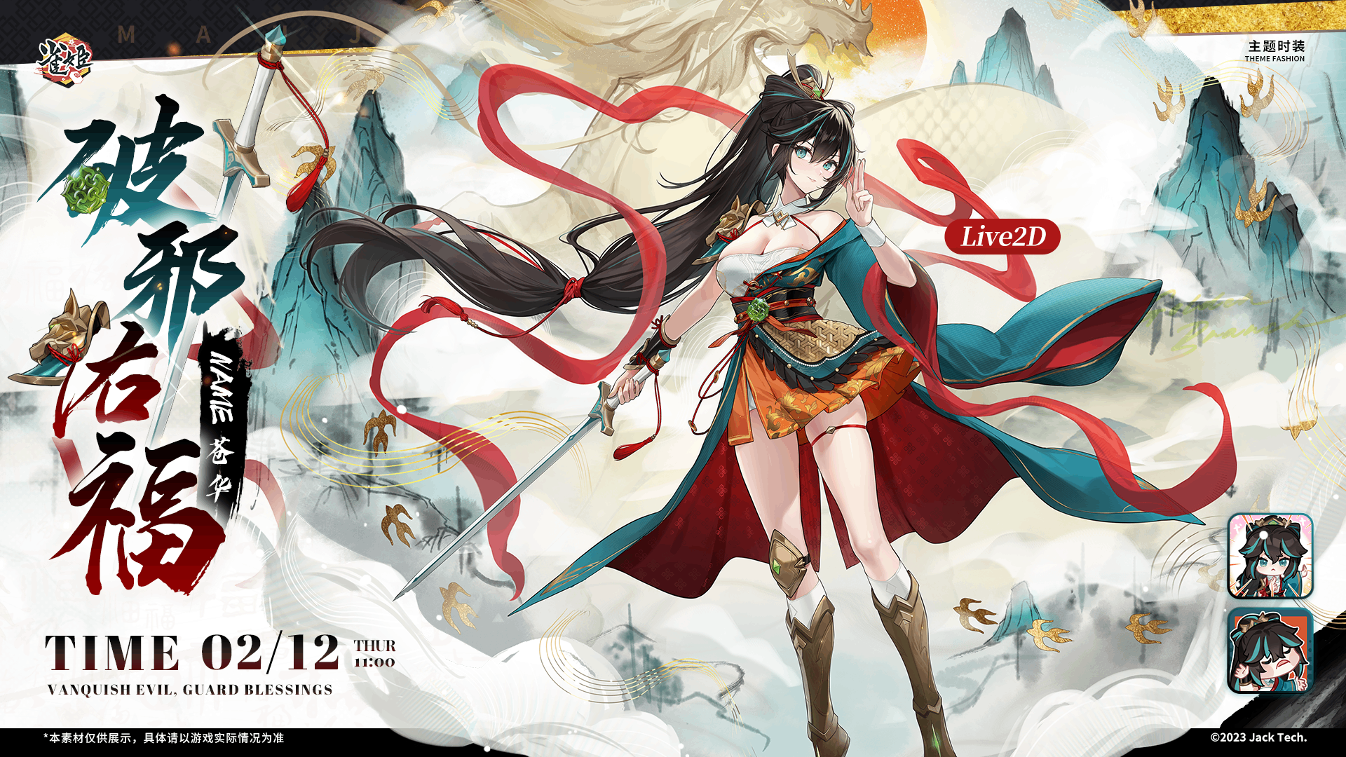 【苍华】动态服装【破邪佑福】相关资源实装!商城限时上架!活动时间:2026年2月12日11:00~2026年3月18日23:59————————————————————【物华天韵】复刻祈愿开启!周年限定雀士苍华&红韵限时出率UP!在祈愿中与她们相遇吧~祈愿时间:2026年2月12日11:00~2026年3月18日23:59