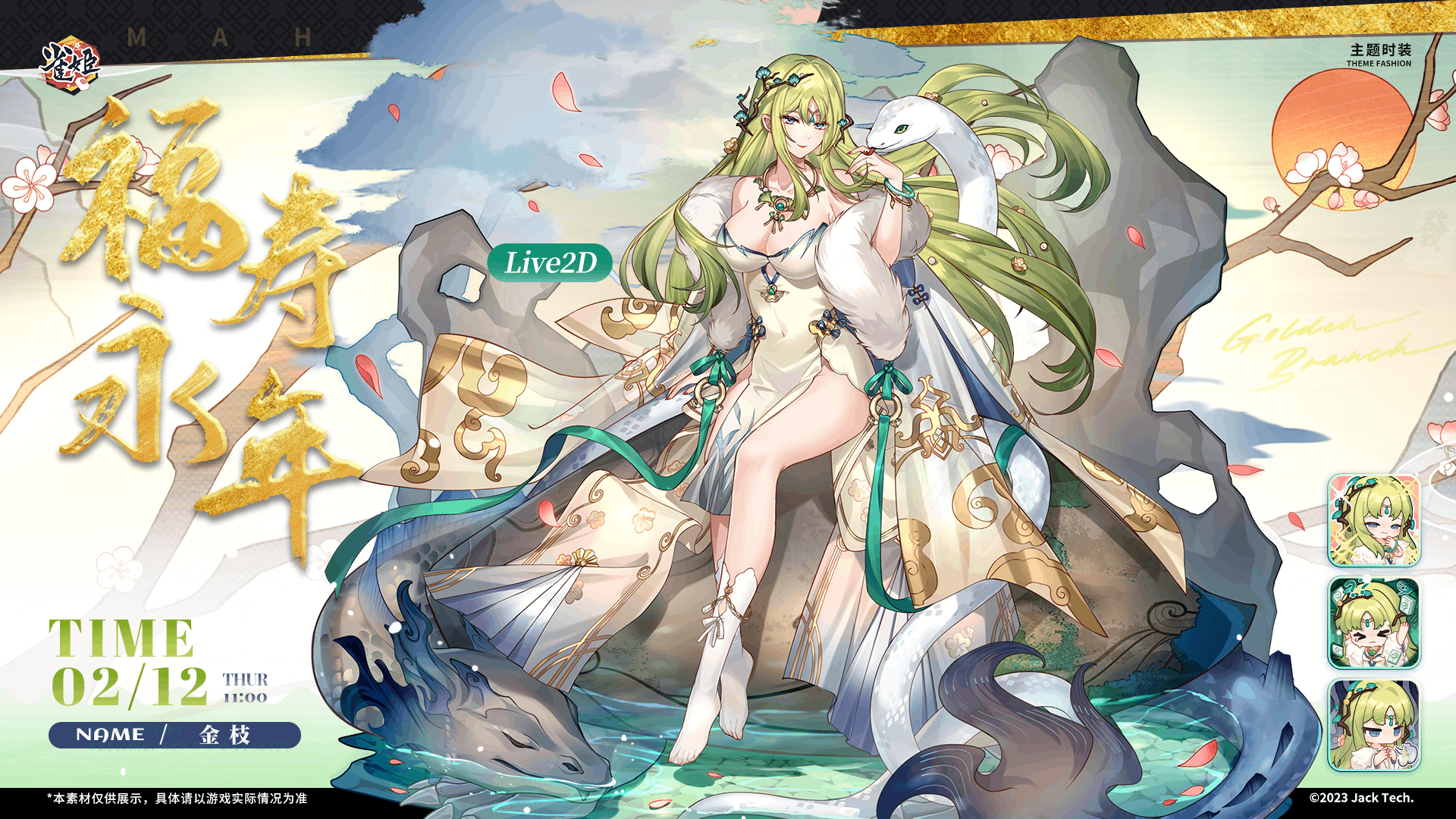 【金枝】动态服装【福寿永年】相关资源实装!商城限时上架!活动时间:2026年2月12日11:00~2026年3月18日23:59————————————————————【慈爱寿神】复刻祈愿开启!周年限定雀士【金枝】限时出率UP!在祈愿中与她们相遇吧~祈愿时间:2026年2月12日11:00~2026年3月18日23:59